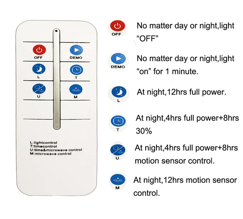 - नाईट सेन्सर + मायक्रोवेव्ह मोशन सेन्सर + रिमोट कंट्रोल