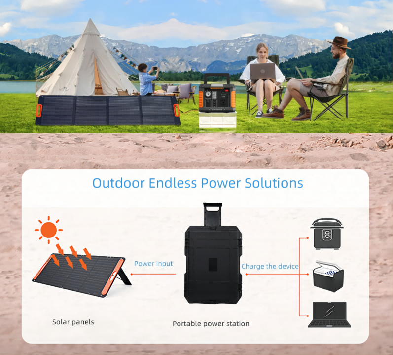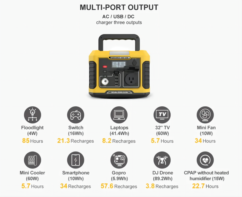लिथियम बॅटरी मोठ्या क्षमतेची स्टोरेज ५००W पोर्टेबल पॉवर स्टेशन