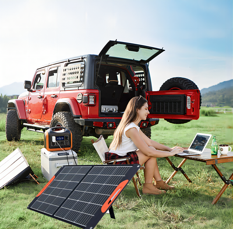 सोलर फोल्डिंग पॅनलमध्ये सामान्यतः उच्च-कार्यक्षमता असलेले सोलर पॅनल, एक बिल्ट-इन बॅटरी, एक चार्जिंग कंट्रोलर आणि एक आउटपुट इंटरफेस असते. सूर्यप्रकाशाच्या संपर्कात आल्यावर, सोलर पॅनल ऊर्जेचे विद्युत उर्जेमध्ये रूपांतर करतात आणि ती बिल्ट-इन बॅटरीमध्ये साठवतात. चार्जिंग कंट्रोलर चार्जिंग प्रक्रियेचे नियमन करण्यास मदत करतो आणि तुमच्या डिव्हाइसना स्थिर आणि कार्यक्षम चार्ज मिळतो याची खात्री करतो.